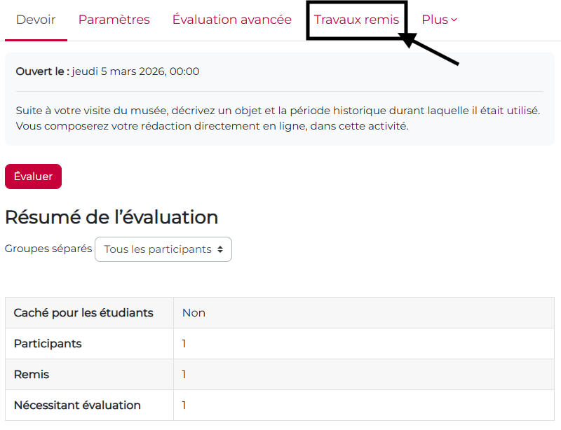 ➡️Anne ouvre une activité « Devoir » en mode édition