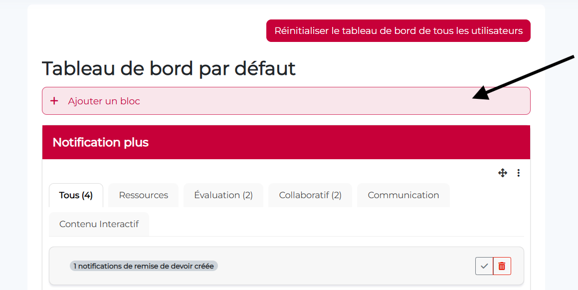 - Ajouter des blocs à différents endroits du site (page accueil du site, tableau de bord, à l’intérieur des cours, etc.) .