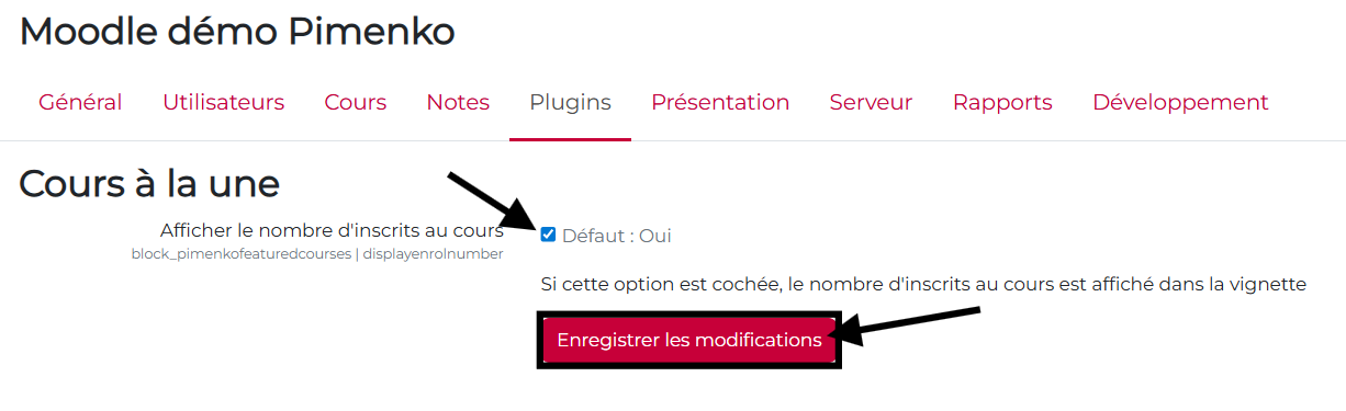 - Nom officiel du plugin : pimenkofeaturedcourses