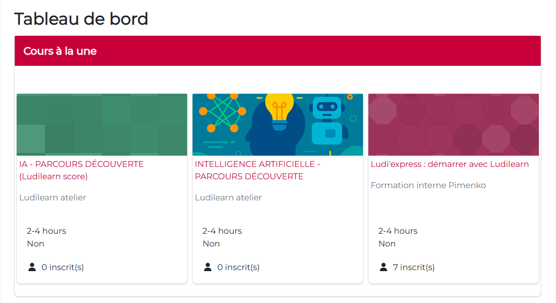 - Un lien vers le cours en cliquant sur le titre ou l’image