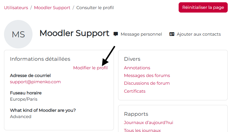 4. Dans la page de profil de l’utilisateur, cliquez sur « Modifier le profil«