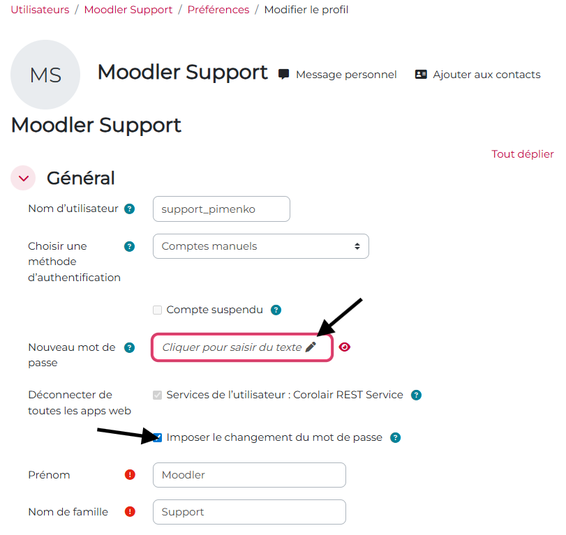 5. Vous pouvez maintenant modifier manuellement le mot de passe de l’utilisateur.