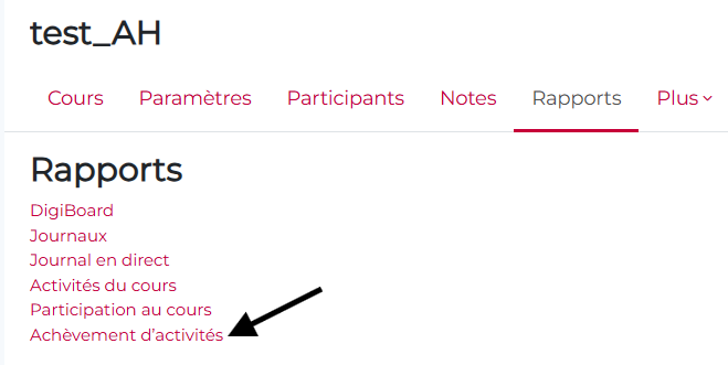Puis cliquez sur « Achèvement d’activités »: