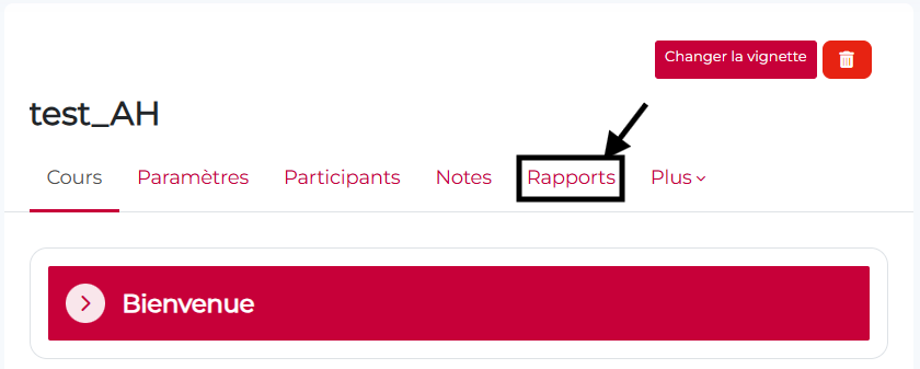 Lorsque vous êtes dans un cours, (cliquez sur « Plus » dans le menu du cours puis) cliquez sur « Rapports ».