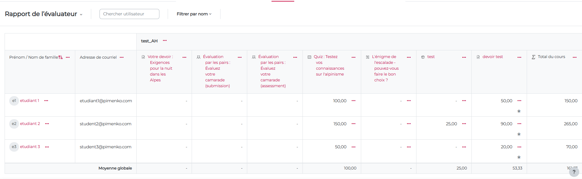 Et voilà le résultat : un fichier Excel avec toutes les informations issues de la correction pour tous les travaux remis.