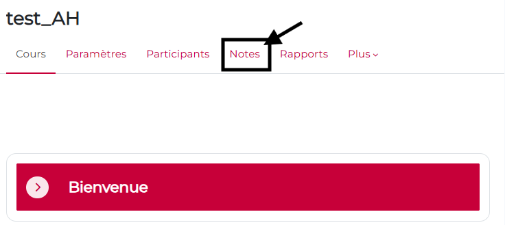 Dans le menu de votre cours, cliquez sur l’onglet « Notes »