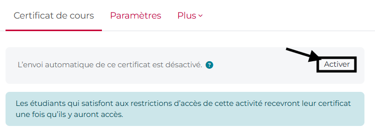 Ajoutez ensuite l’activité « Certificat de cours ».